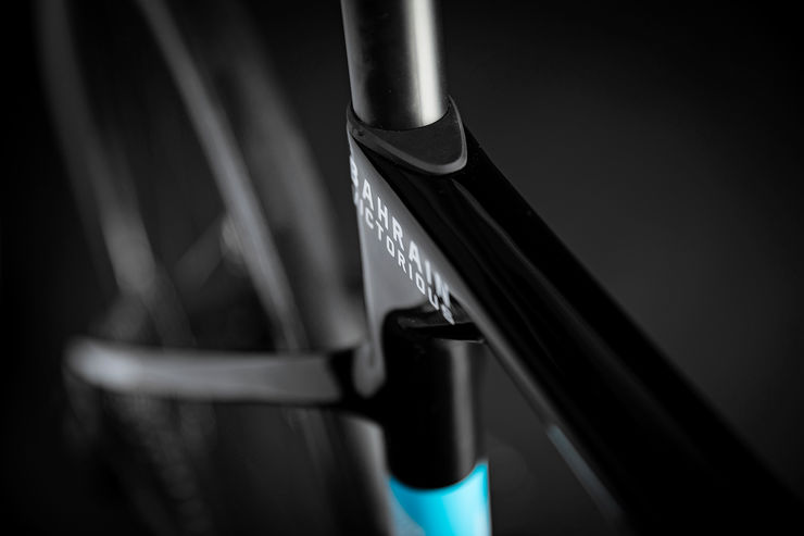 相較於圓形管,外形變化多端的低風阻管形,使減重變得更為困難。解決方式為,透過更精準的碳纖維佈局,以及將頂尖高性能碳纖維原料的使用佔比拉高。與上一代900g的CF4車架相比,新世代CF5車架僅為860g(皆為M尺寸),重量降幅約4.4%。以市場主流的輕量化零件來搭配,可以輕易地達到UCI的6.8kg限重規定。